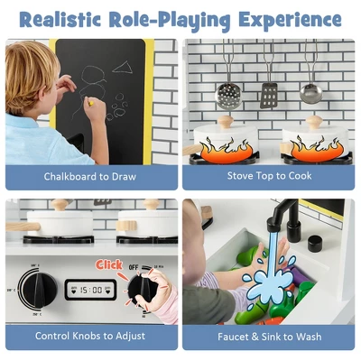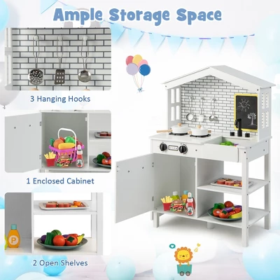 Costway Kids Farmhouse Kitchen Play Set Wooden Pretend Toy With Storage & Accessories