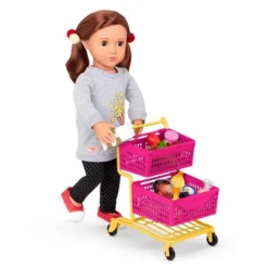 Our Generation Grocery Day Shopping Cart Pink & Yellow Accessory Set For 18″ Dolls