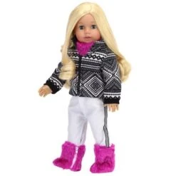Sophia’s Print Ski Coat, White Pants, Neck Warmer, & Boots Set For 18” Dolls, Black/Berry