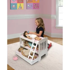 Badger Basket Trundle Doll Bunk Bed With Ladder And Free Personalization Kit – White/Pink