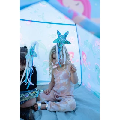 Even the littlest of mermaids can enjoy imaginative play with this Mermaid and Friends Play Tent! Our lightweight 36″ x 36″ x 36″ tent is the perfect size for your little mer-kids. The stress-free setup, waterproof floor and mesh panels give parents a birds-eye view and peace of mind while your little one enjoys a stimulating environment any time of the day!