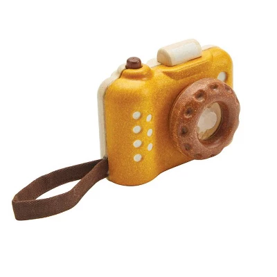 - The My First Camera is crafted with PlanWood. A PlanToys material made from surplus sawdust that results in a more flexible water-resistant wood and is pigmented with water-based and natural dyes that are free from harmful chemicals. Softened edges make the camera extra child-friendly and safe.