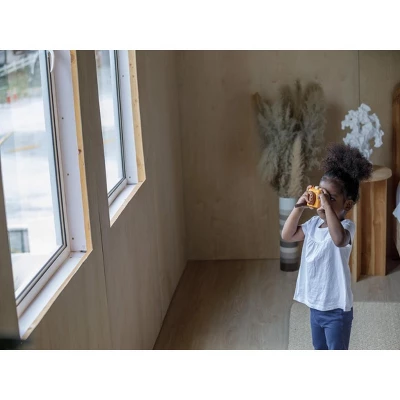 Get picture perfect views of your surroundings with this PlanToys My First Camera. Point, focus, and click the camera. Children will see the different images they try to capture through the kaleidoscope lens. This camera now comes in our orchard colorway. Made sustainably in Thailand with PlanWood.