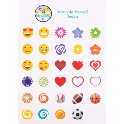 Ride Along Dolly’s blue doll/stuffed animal bike seat easily attaches to the rear crossbar hole of most bikes. Perfect for all 18 inch dolls, including American Girl or large stuffed animals. This set comes with DIY decorative decals to customize your doll’s or stuffed animal’s bike seat however you’d like.