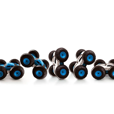 The Flip Stunt Rally RC Vehicle makes mastering and performing driving stunts incredibly easy! Its light and compact size, oversized tires, and reversible design are all optimized for endless flips, spins, and tricks! Oversized tires lined with textured grips make driving easy on almost any surface! Great for indoor and outdoor use, make any stage your arena. The tires’ size also act as a buffer, preventing crashes and making flips and turns even easier! Completely reversible, the Flip Stunt Rally car can be driven on either side (red or white) for even more stunt versatility! Flip the car over mid-movement and keep going without having to slow down. The reversible design is perfect for rough terrain, ramps and obstacle courses, and wall tricks!