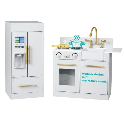 - FREE-STANDING MODULAR DESIGN: With two separate units, one for the fridge & freezer, the other for the stink & stove combo, you can easily arrange this kitchen playset to suit your unique decor needs.
